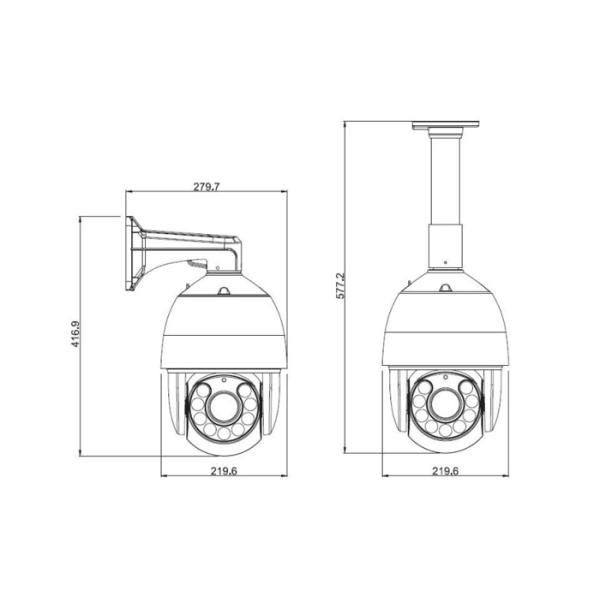 1) 360°endless pan range and 0°- 90°tilt range, support auto-flip, non-surveillance blind area